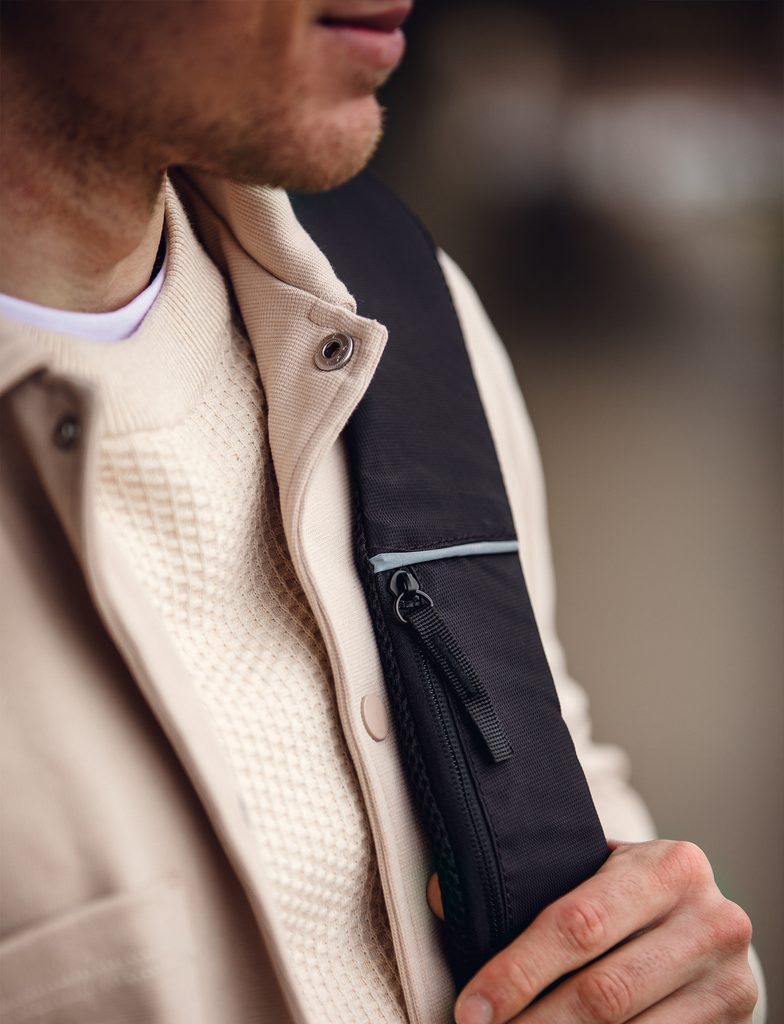 - Fényvisszaverő részletek a hátizsák pántjain, cipzáras kulcstartó zsebecskével