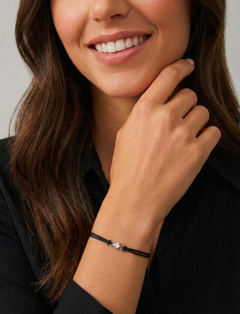További információkA zsinóros karkötő apró kristállyal minden csuklót megörvendeztet. Az állítható zsinór és a finom, csillogó részlet jól illik minden öltözékedhez.