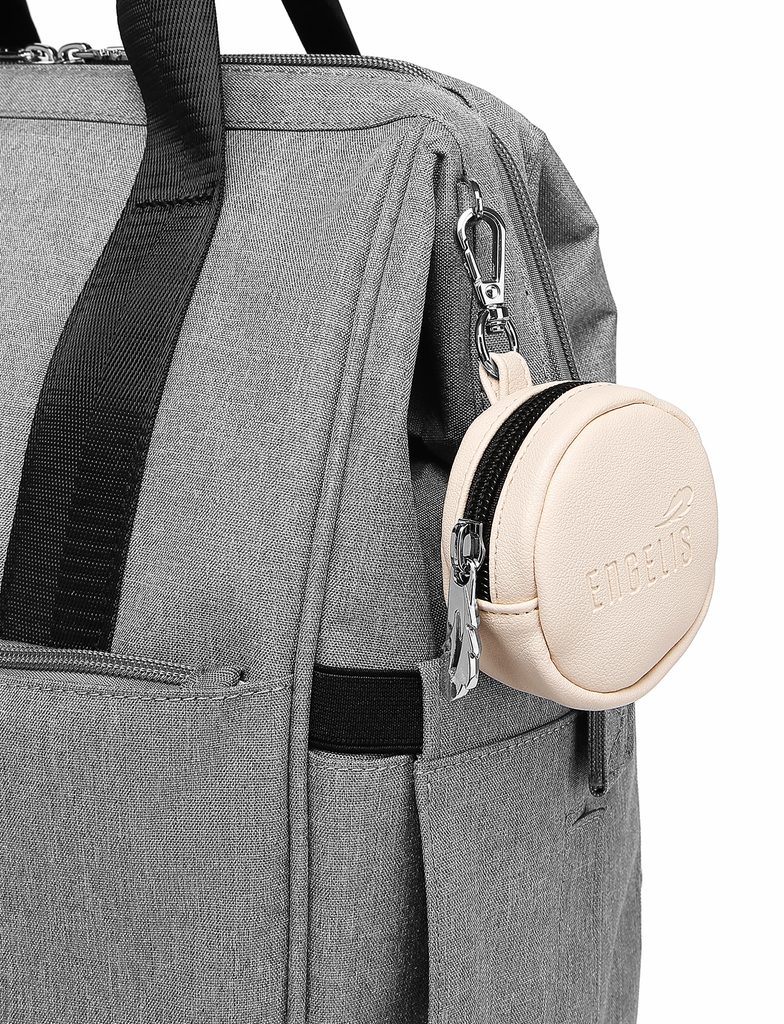 Hátizsák, amelyben minden a helyén van. Több zseb több helyet jelent a cumisüvegnek, uzsonnának és saját dolgaidnak. A masszív akasztó minden napi terhelést elbír, a levehető kerek zsebtartó pedig befogadja a cumit, amit a lehető leggyorsabban kéznél akarsz tartani. Praktikus és tartós hátizsák, amely készen áll mindenre, amit a nap hoz, akár a városban vagy babakocsival kirándulva.