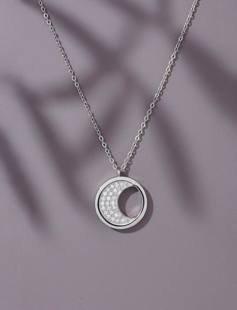 Moon Silver Nyaklánc nyaklánc hold kristályokkal