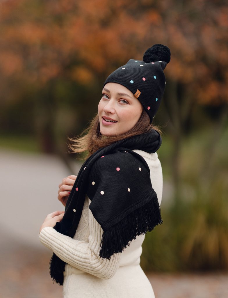 További információk„Hiszünk benne, hogy ez a fekete sapka lesz az idei tél kedvence. Hiszen megvan mindene, ami egy igazi sapkának kell. Tökéletesen felmelegít és jól fog állni neked. És bónuszként gombóc és kedves pöttyök díszítik.“