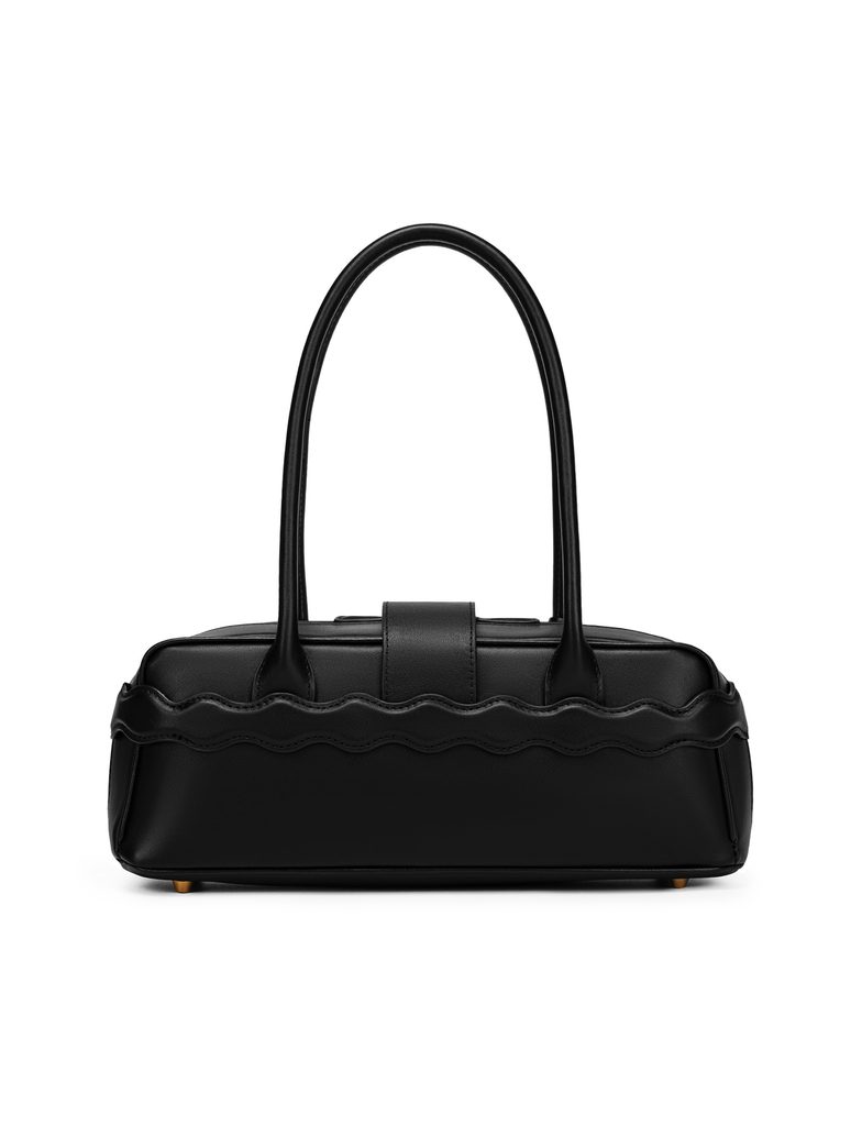 Ez a válltáska a legmagasabb minőségű valódi olasz bőrből készült, és karcsú megjelenésével megtéveszt. Hihetetlen mennyiségű holmi fér bele a megnyúlt „east-west" sziluettnek és a kifejezett hosszú füleknek köszönhetően, amelyek modern felfogásban újraértelmezik az ezredforduló ikonikus esztétikáját. Első pillantásra lenyűgöz a masszív, szerzői fém csat a szíjon, az erdélyi építészet által inspirált hullámvonalak és a kollekció finom vizuális aláírása ABODI x VUCH LAB.