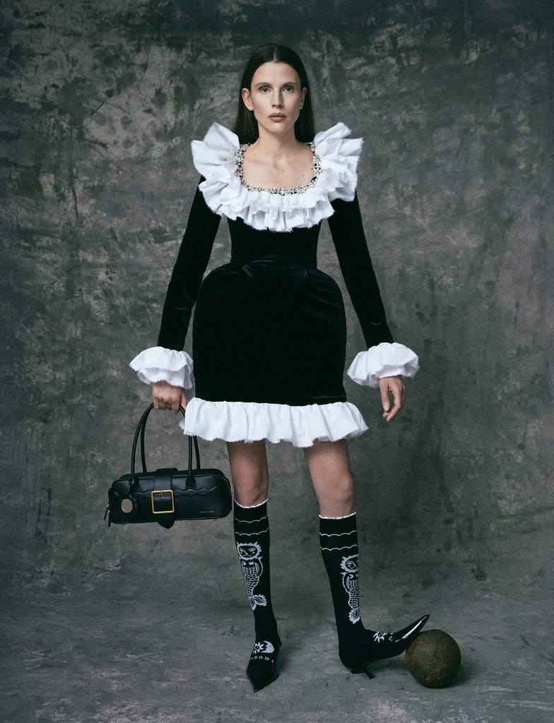 A modell négy színváltozatban kapható, ahol minden variáns más hangulatot idéz: drámai matt fekete az esti erőhöz, szenvedélyes teljes vörös, finom romantikus világos krém vagy egyedi rózsaszín apró pöttyök formájú kovácsoltvassal a teljes kerület mentén – a városi eleganciától a diszkrét quiet luxury tónusig. A táskához hozzákapcsolhatod a Villushkát, a védő amulettet - tündért, amely összeköti a régi cseh és erdélyi folklórt.