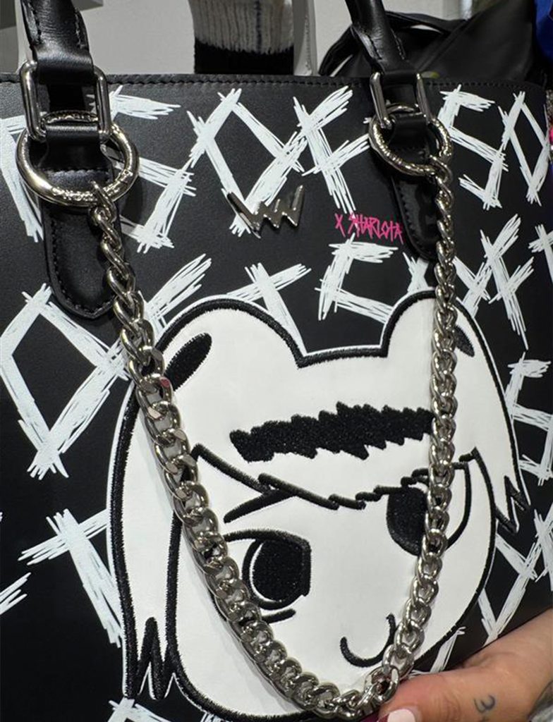 További információkTáska, amely a Jin és Jang koncepcióból indul ki. Nincs fény sötétség nélkül, és nincs sötétség fény nélkül. Ennek a táskának az inspirációja Sharlota kezén lévő baba tetoválásai voltak, amelyek alatt a Soft és Hard feliratok rejtőznek, utalva zenei alkotásaira és személyiségére. A babák hímezve vannak a táskán, ami egyediséget és részletes kidolgozást kölcsönöz neki. A limitált kollekciót követő láncok és medál ritmust és mozgást adnak a táskának. Az eredmény egy markáns, kötetlen egész, amely magára vonja a figyelmet.