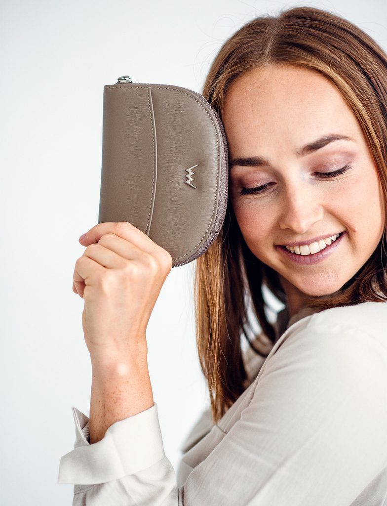 Az Alindra bőr pénztárca első pillantásra magával ragad az egyedien lekerekített formájával. Belsejében cipzáras zseb található az aprópénz számára, valamint átlátható…