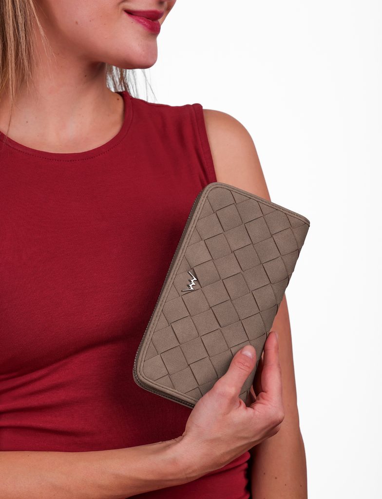 Nightie Nicci Intrecciato Beige nagy cipzáras pénztárca fonott mintával