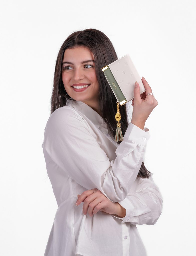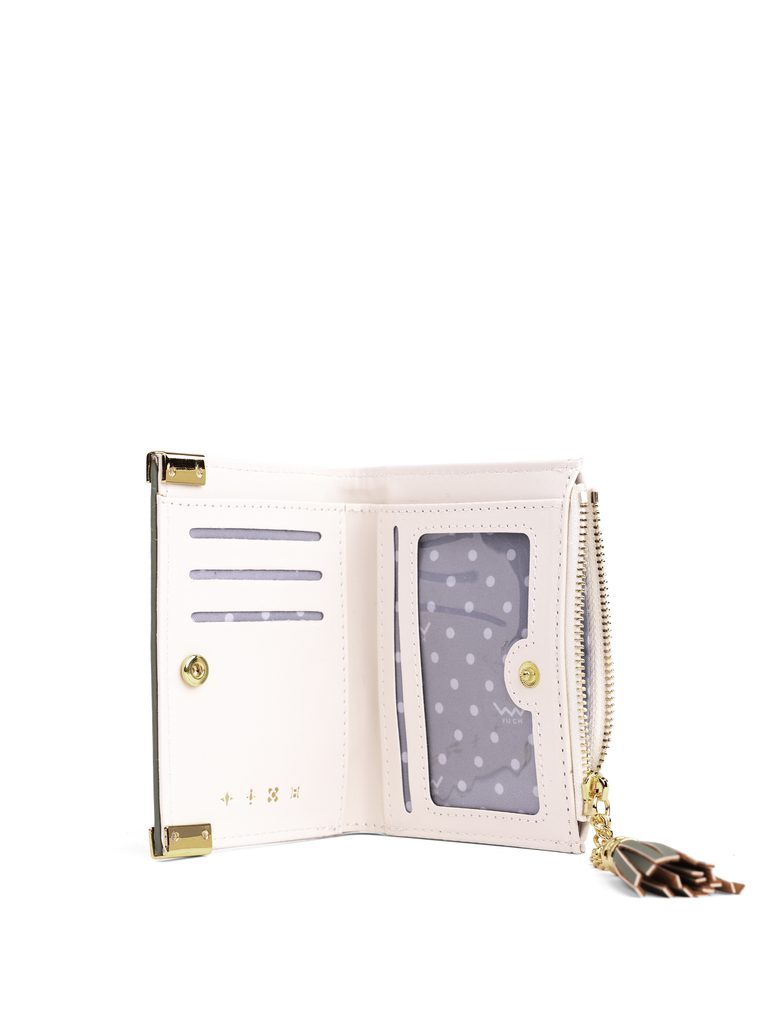 További információkČerná se zlatými detaily je jistotou elegantního a šmrncovního vzhledu. Bezpečné zapínání na cvoček zajistí, že ti z peněženky Shuri nic nevypadne. Drobné dáš do samostatné kapsičky na zip, kterou zdobí výrazný doplněk na zlatém řetízku.