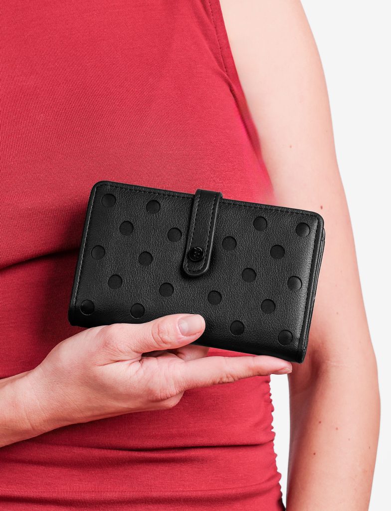 Linna Black közepes pöttyös patentos pénztárca